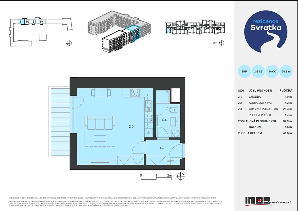 K dlouhodobému pronájmu Vám nabízíme zcela nový, krásný, světlý, moderní byt 1+kk v osobním vlastnictví v novostavbě bytového domu na ulici Sokolská, Brno. Byt o ploše 34,9 m2 je umístěn ve 2.NP cihlového domu s výtahem a je orientován na jih a náleží k němu balkón o ploše 5,6 m2.
