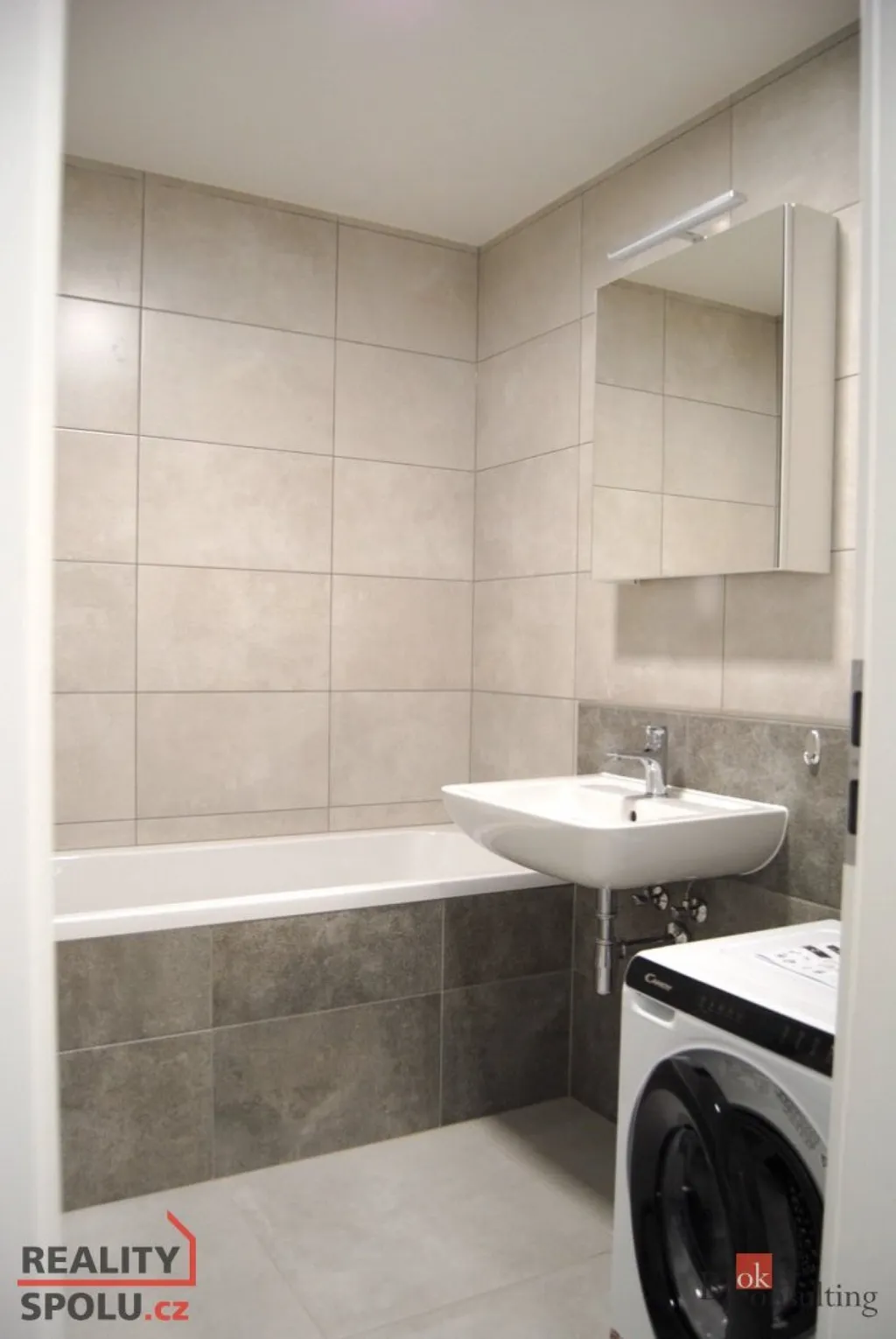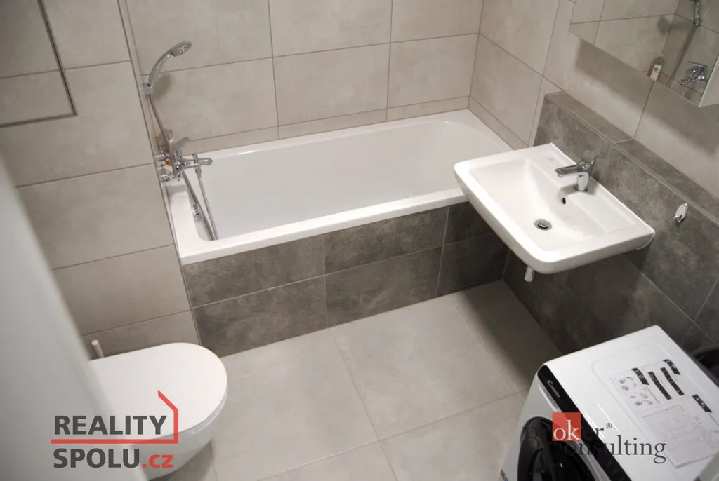 Byt je plně vybavený (kuchyňská linka, spotřebiče, pračka, šatní skříň).