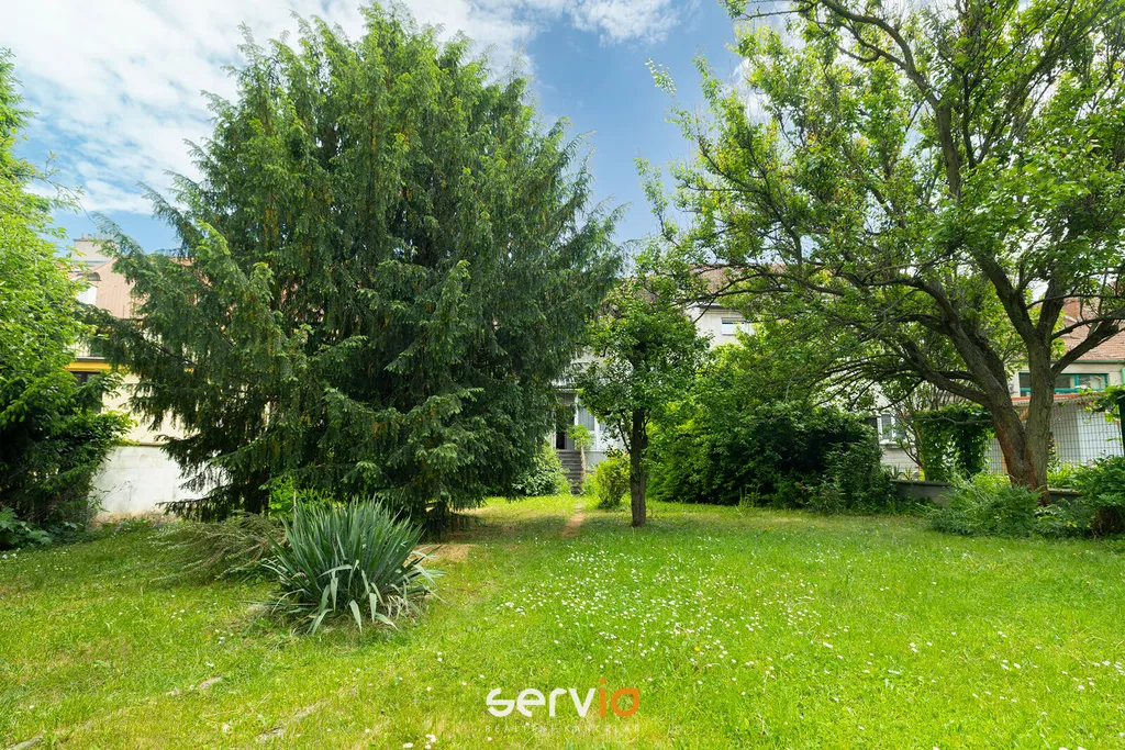 Zahrada za domem je orientována do vnitrobloku a poskytuje příjemné, klidné zázemí mimo ruch ulice. Celková plocha pozemku je 860 m², z toho zastavěná plocha a nádvoří tvoří 247 m² a samotná zahrada má 513 m².