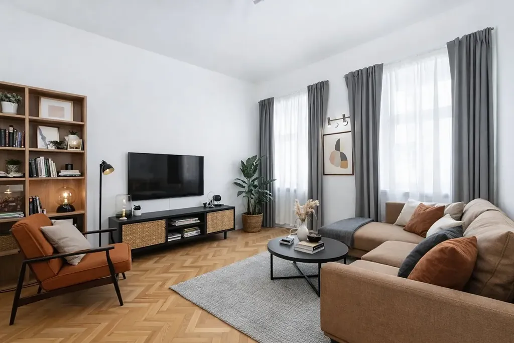 Byt prošel v posledních letech citlivou rekonstrukcí a je ve výborném technickém i estetickém stavu. Dominantou interiéru jsou krásné zrepasované dřevěné parkety, které dodávají prostoru nadčasovou eleganci a jedinečnou atmosféru typickou pro letenské činžovní domy.