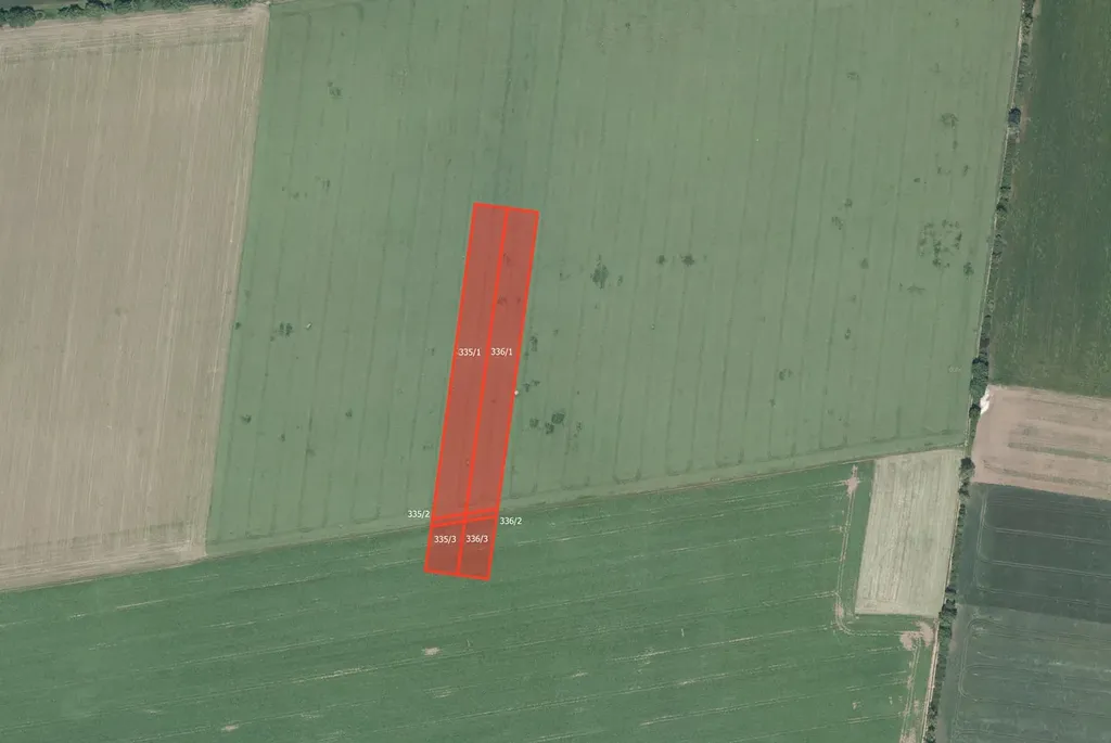 Předmětem prodeje jsou následující pozemky: 335/1, 335/2, 335/3, 336/1, 336/2 a 336/3