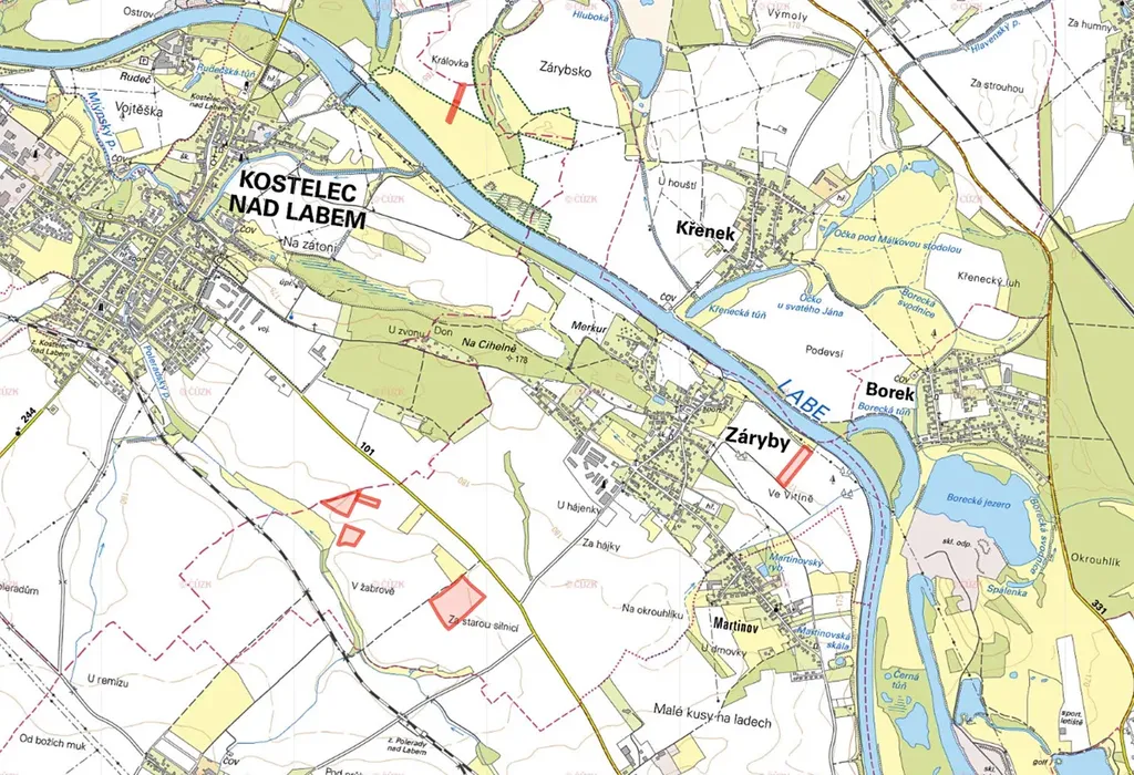 V katastrálním území Kostelec nad Labem (okres Mělník) jsou pozemky zapsány na LV 1112 a jedná se o parcelu č. 1400/32 s druhem trvalý travní porost a parcelu č. 1399/23 s druhem orná půda.
