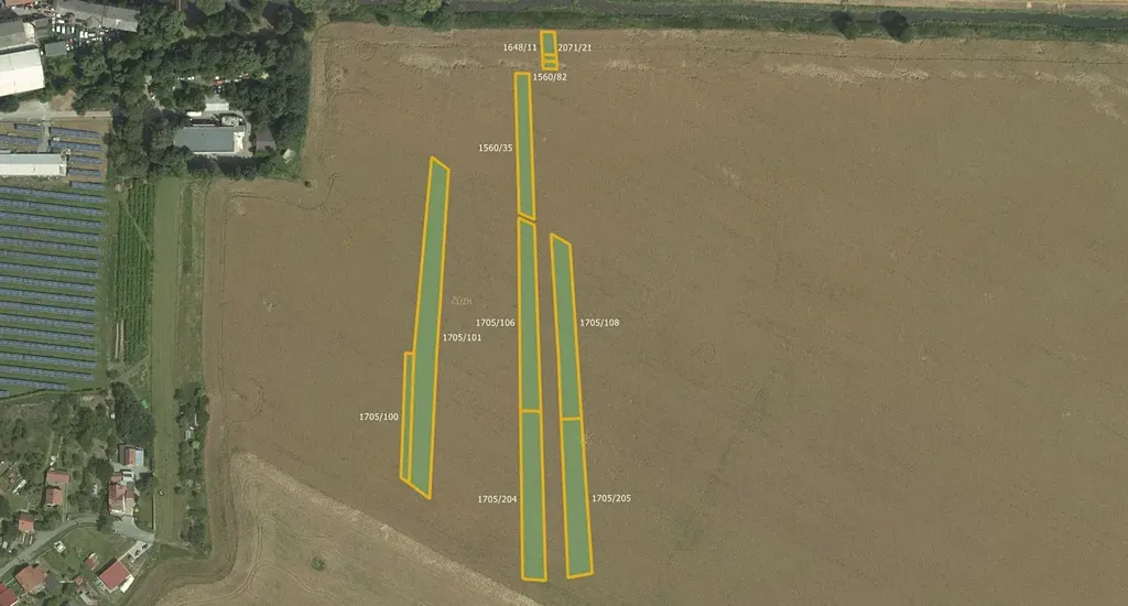 Parcely jsou zapsány pod čísly 1560/35, 1560/82, 1648/11, 1705/100, 1705/101, 1705/106, 1705/108, 1705/204, 1705/205, 1989/32, 2000/56, 2000/81 a 2071/21.