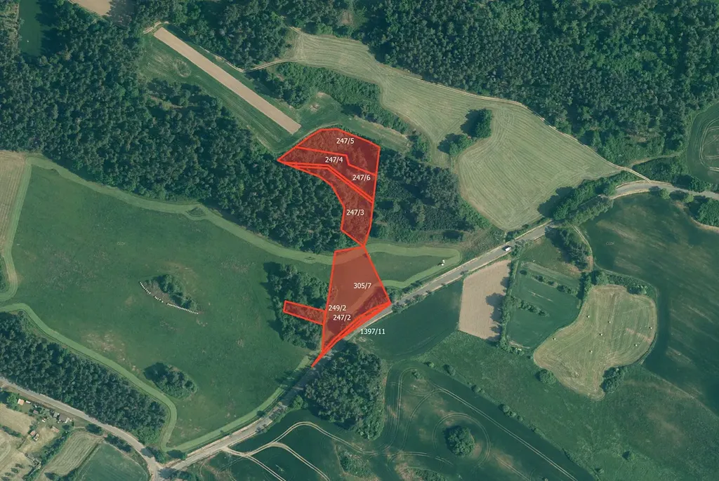 k. ú. Komušín: 247/2, 247/3, 247/4, 247/5, 247/6, 249/2, 305/7, 530/2, 920, 1397/11, list vlastnictví 305