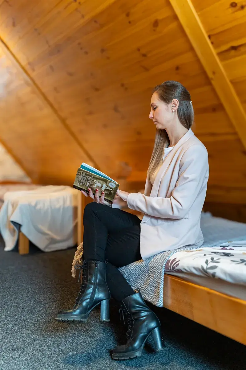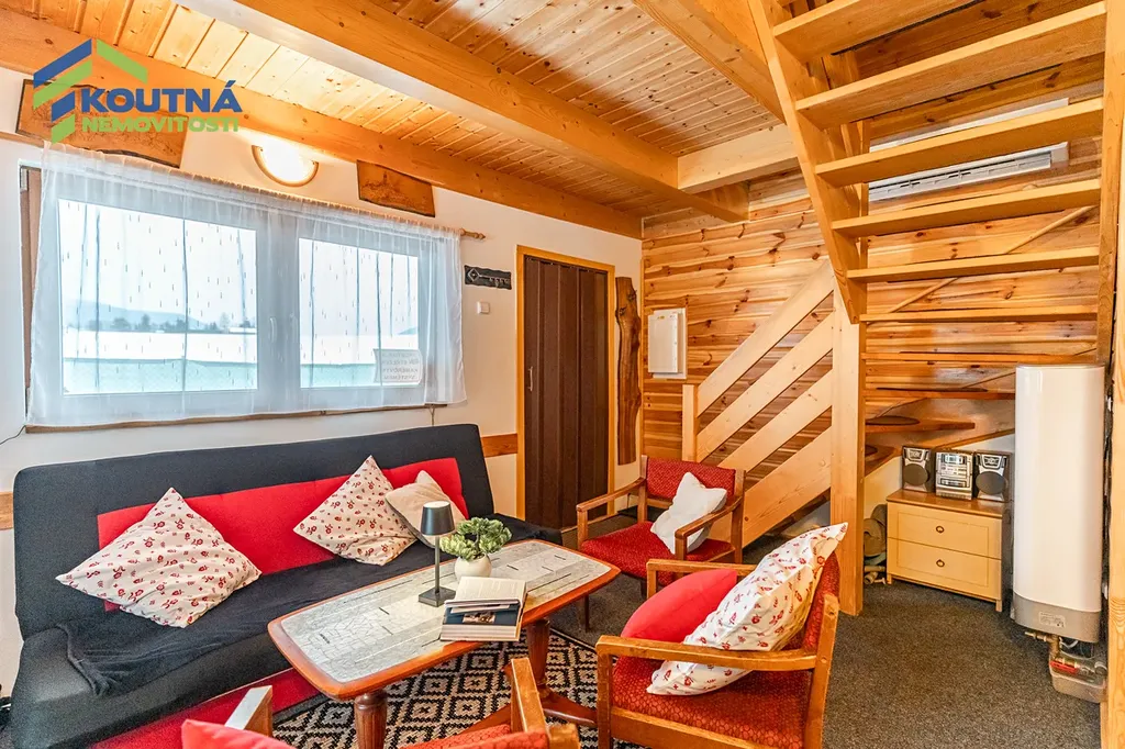 Chata je ve velmi dobrém stavu, udržovaná, připravená k nastěhování v průběhu února 2026. V přízemí se nachází plně vybavený kuchyňský kout s ledničkou, myčkou i mikrovlnnou troubou, obývací část a koupelna se sprchovým koutem. Po schodech nahoru poté vcházíte do útulného prostoru pod střechou, který nabízí možnost spaní až pro 4 osoby. Z obývací části vede také vstup do nevytápěné zimní zahrady, kde si kromě výhledu můžete užít pobyt v infrasauně, která je součástí vybavení. Vzhledem k tom, že jednotlivá patra nejsou oddělena dveřmi, je chata vhodná zejména pro pár, jednotlivce nebo jako spolubydlení.