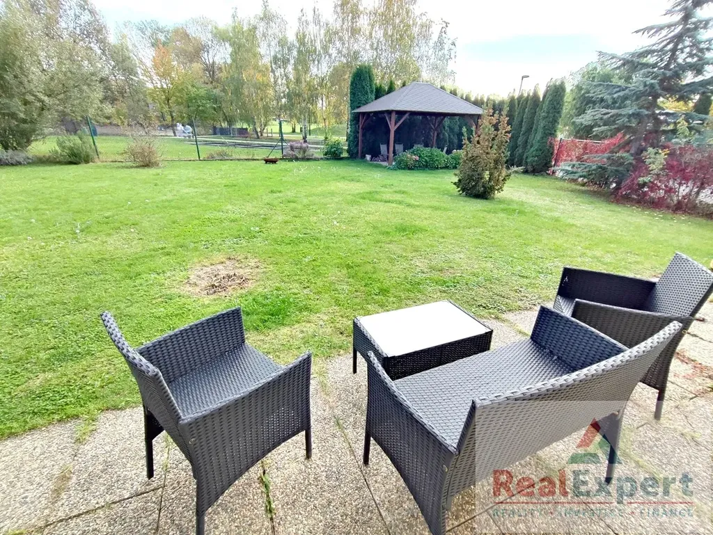 Nabízíme k pronájmu velice hezký byt 2+1, o celkové ploše 79 m2, (byt 64 m2 + 15 m2 terasa), situovaný v klidné lokalitě - ul. Za rybníkem, v obci Jesenice. Byt se sestává z prostorného obývacího pokoje, ložnice, kuchyně vybavené kuchyňkou linkou a vestavnými spotřebiči (lednice s mrazákem, plynový sporák s elektrickou troubou, myčka, mikrovlnná trouba), předsíně a koupelny s vanou a WC. Z bytu je přímý vstup na terasu o ploše 15 m2, která dále navazuje na společnou zahradu bytového domu, která je oplocená a přístupná pouze vlastníkům či nájemcům bytů v objektu. Z terasy je krásný výhled do zeleně a na nově rekultivovaný rybník Pančák. Byt je vybaven osvětlovacími tělesy, podlahovou krytinou (koberce, dlažba), žaluziemi, vestavěnými skříněmi v předsíni, automatickou pračkou a bezpečnostními dveřmi. Topení a ohřev vody řešen vlastním plynovým kotlem. Veškerá občanská vybavenost v místě. Výborné parkování přímo v ulici a spojení do Prahy - cca 20 min. busem na metro Budějovická nebo 10 min. na Opatov. Výborná dostupnost na dálnici D1, D5, Pražský okruh. Byt bude nově vymalován. Nastěhování je možné od března. Zajímavá příležitost - doporučujeme.