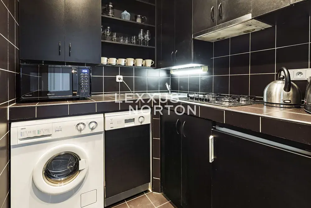 Byt disponuje obývacím pokojem se sedací soupravou a jídelním stolem se židlemi, plně vybavenou kuchyní (trouba, lednice, mrazák, mikrovlnná trouba a myčka nádobí). Dvě ložnice spolu s postelemi, dvě koupelny - jedna se sprchou a bidetem, druhá s vanou a dvě šatny. Výhodou jsou vestavěné skříně. Byt má také pračku a sušičku.