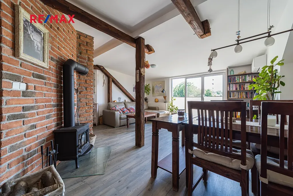 Exkluzivně nabízíme ke koupi atypický podkrovní byt na okraji města Šumperka s dispozicí 3+kk. Tento byt, resp celý půdní prostor, byl kompletně nově zbudován v roce 2011. Přestavba zahrnovala výměnu krovů, izolace, podlahy, kompletní instalace, mezibytové příčky, bytové příčky, okna, dveře, balkóny, střešní krytinu. Byt je plný velmi pozitivní energie a je velmi slunný, což lze korigovat zabudovanou klimatizací, kterou můžete rovněž v chladnějších dnech přitápět. Další příjemný zdroj tepla jsou vysoce výhřevná krbová kamna. Pro pohodlnou temperaci a vytápění je k dispozici ještě elektrokotel s teplovodním rozvodem. Byt samotný je uživatelsky velmi příjemný a má dobře řešenou dispozici, která nabízí mnoho úložných prostor jak na chodbách, tak v šatně. Dětský pokoj a obývací pokoj s balkónem jsou orientovány na jihozápad, nabízí krásné výhledy do přírody zalité sluncem. Kuchyně, ložnice a koupelna jsou orientovány do vnitrobloku na severovýchodní stranu.