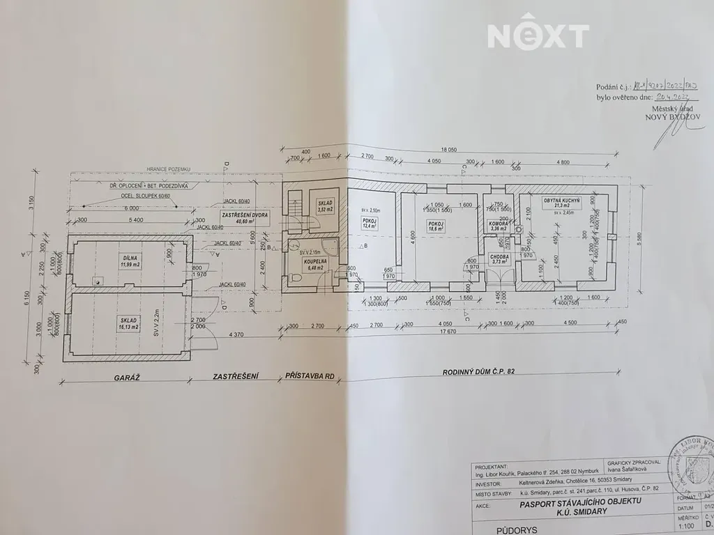 Nabízíme k prodeji rodinný dům /chalupu v obci Smidary u Nového Bydžova v Královéhradeckém kraji. Jedná se o samostatně stojící RD v k.ú. Smidary na pozemcích o celkové výměře 971 m2. Pozemky jsou kompletně oploceny. Na pozemcích se dále nachází garáž o UP 16,1 m2, dílna 12 m2, přístřešky a stavba určená pro chov králíků a slepic. Dispozice domu : vstupní chodba, obytná kuchyň, komora, 2 pokoje, koupelna a sklad. Nemovitost je napojena na obecní kanalizaci, obecní vodovod, elektřinu 220/380 a plyn. Vytápění je zajištěno plynovým kotlem a TUV elektrickým bojlerem. V domě se do konce března bydlelo, má původní vybavení, okna, dlažby, podlahy omítky atd. Pro další trvalé bydlení by byla vhodná částečná, nebo i celková rekonstrukce a zateplení. V současnosti není obydlen a je ihned k nastěhování. Obec Smidary leží cca 6 km od Nového Bydžova, 35 km od Hradce Králové a 26 km od Jičína. V obci je ZŠ, MŠ, obchod, hospůdka, lékárna a zdravotní středisko, ve kterém je praktický lékař pro dospělé, dětský lékař a zubař. Pokud máte zájem o prohlídku, nebo potřebujete další informace, neváhejte nás kontaktovat. Rádi vám poskytneme veškeré potřebné informace a domluvíme termín prohlídky. Pro komunikaci uvádějte evidenční číslo zakázky N111350.