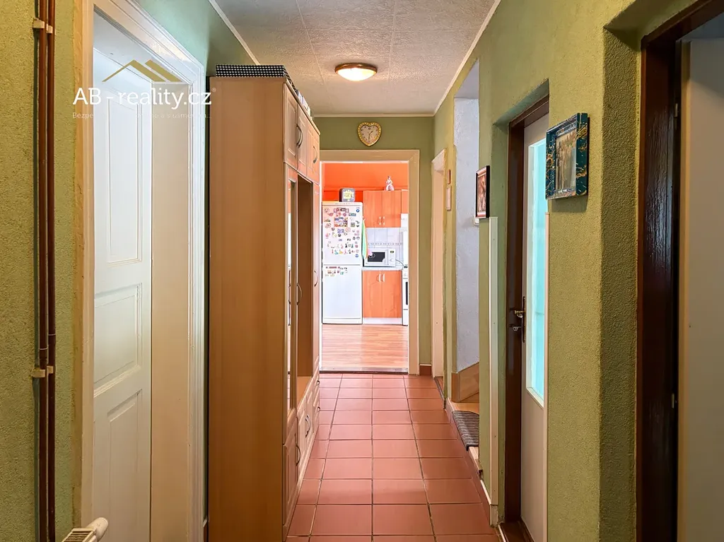 v Krupce – Unčíně. Dům je umístěn na vlastním pozemku s celkovou plochou 1118 m2 a nabízí celkem 2 NP a suterén/sklep. Dispozice je následující: