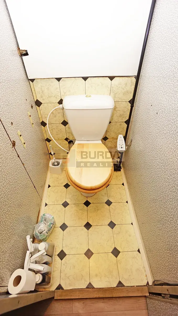 V původním bytovém jádru je v koupelně vana 120 cm, umyvadlo a přípojky pro pračku. WC je samostatné. Kuchyňská linka je vybavena elektrickým sporákem zn. Mora.