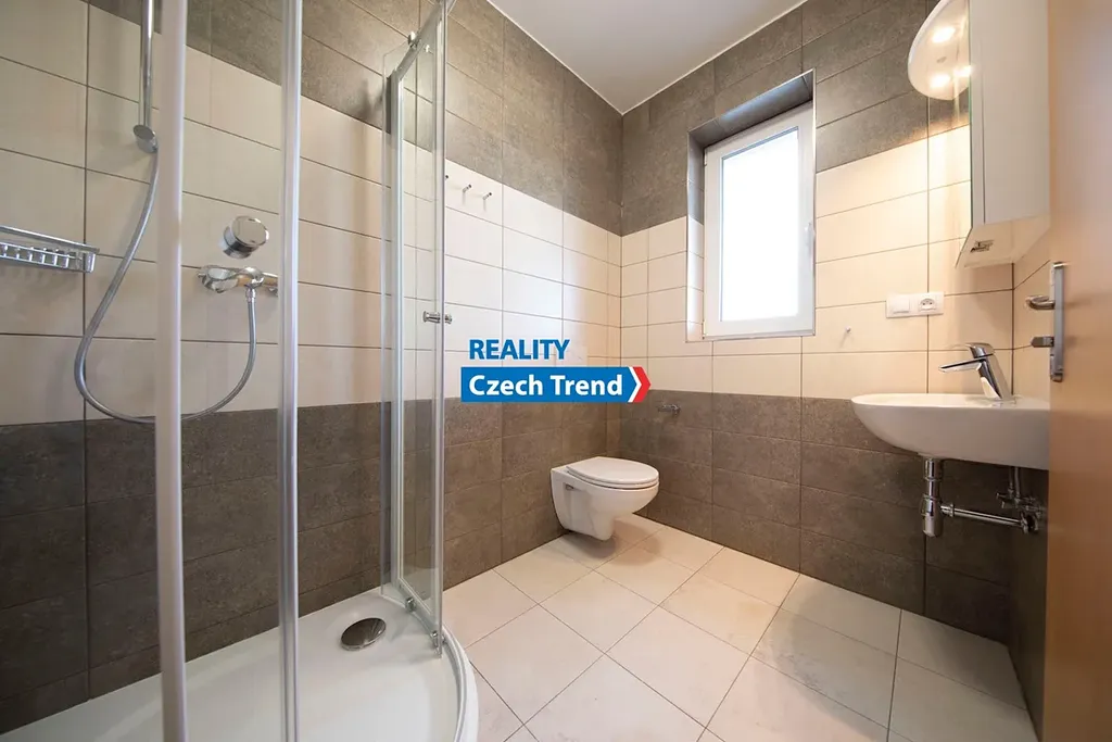 Pronájem novostavby moderního, rodinného domu za cenu bytu. Nabízíme k pronájmu řadový, rodinný dům, 4+kk s garáží a venkovním parkovacím stáním na ulici Šípková v Olomouci. Velmi nízké nájemné je nižší, než nájemné srovnatelně velkého bytu. Měsíční zálohy na elektřinu vč. topení jsou cca 5.000,- Kč, na vodu cca 1000,- Kč. Celková velikost pozemku k domu je včetně zastavěné plochy 262m². Dům je postaven z cihel Porotherm, okna trojskla, značkové armatury Hansgrohe. V přízemí domu je vstupní chodba, koupelna se sprchovým koutem, umyvadlem, toaletou a přípojkou na pračku, technická místnost s elektrickým kotlem a bojlerem na ohřev teplé vody, kuchyňský kout s kuchyňskou linkou obsahující sporák s troubou, digestoř, dřez s baterií a přípravu na myčku, obývací pokoj s francouzským oknem a vstupem na zastřešenou terasu a schodiště do patra. V patře domu jsou tři ložnice a koupelna s vanou, umyvadlem, toaletou, bidetem a přípojkou na pračku. V celém domě je na podlaze dlažba s teplovodním podlahovým vytápěním. Dům je připojen na optický kabel, rozvody internetu a TV signálu jsou v každém pokoji. V místě je veškerá občanská vybavenost a nové, oplocené, dětské hřiště. MHD v dosahu. Volný od 15.4. 2026. Kauce je ve výši dvou měsíčních nájmů, provize pro RK činí jeden měsíční nájem + DPH. Pronajímatel preferuje pracující rodinu bez domácích mazlíčků.