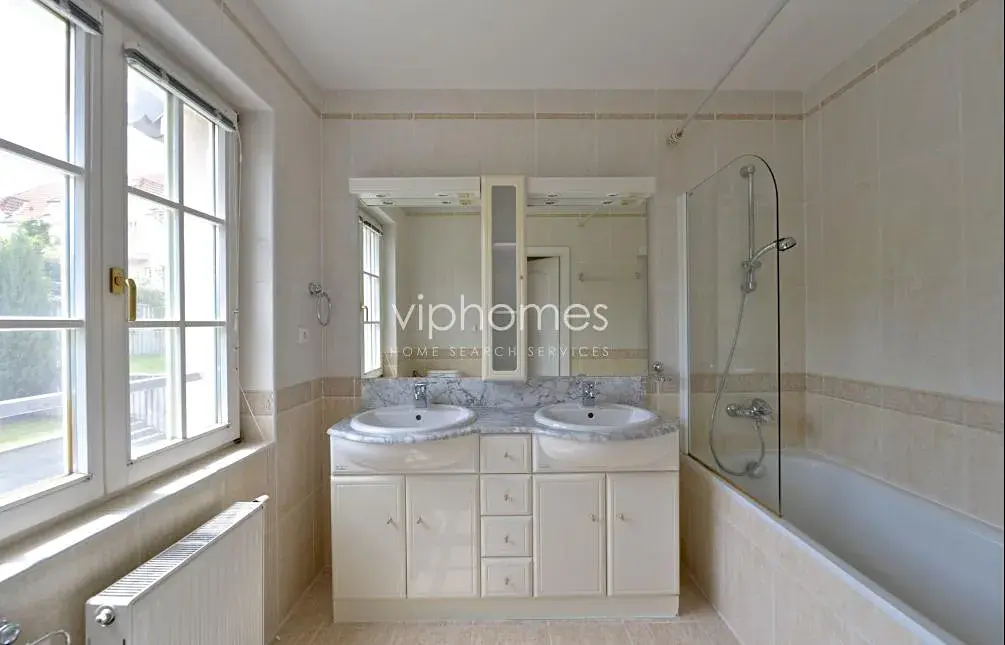 Dispozice domu je 5+1 k pronájmu disponuje velkorysou obytnou plochou čítající celkem 288 m2. Moderní interiér domu je tvořen vstupní halou, vzdušným obývacím pokojem, kompletně vybavenou kuchyní (sporák, trouba, lednice, mrazák, myčka nádobí, mikrovlnná trouba). Dále se zde nacházejí 4 světlé ložnice a 3 koupelny (vana, sprchový kout, pračka). K domu náleží balkon, udržovaná zahrada a 2 parkovací stání v garáži.