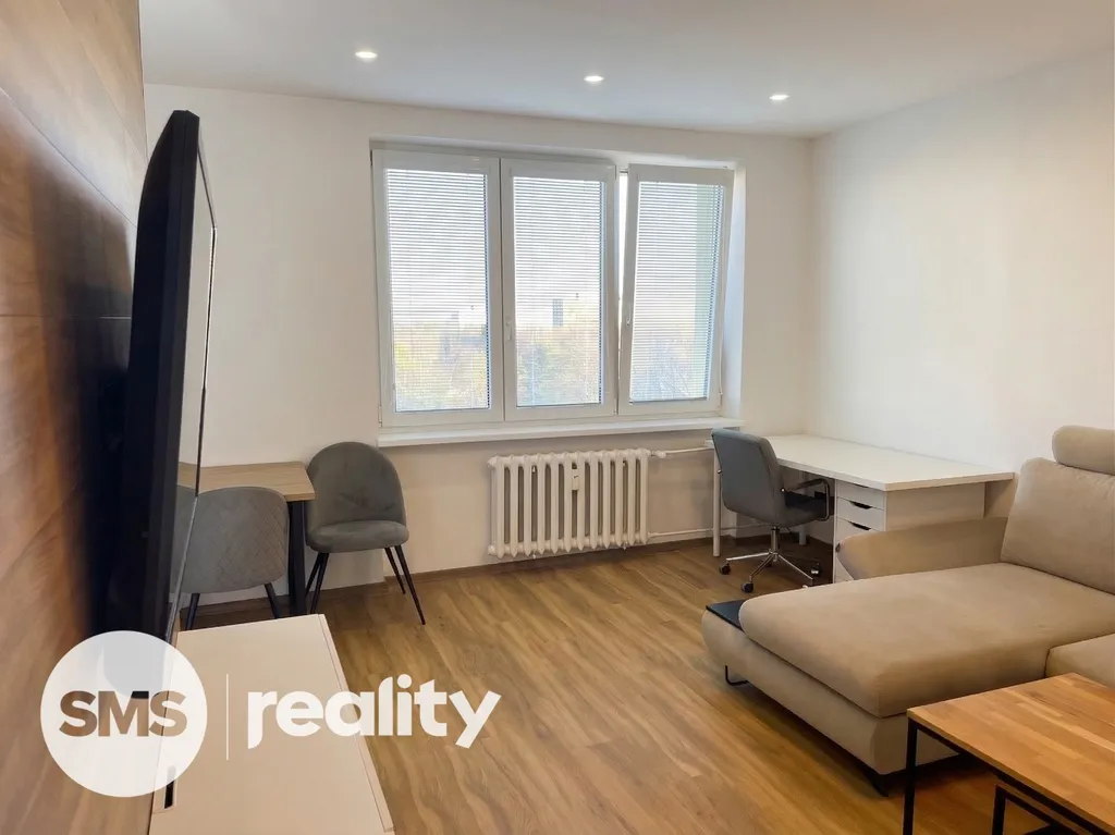 Dispozice bytu je velmi praktická a zahrnuje vstupní chodbu, samostatnou ložnici, obývací pokoj s kuchyňským koutem a koupelnu s toaletou. Obývací část je vybavena prostornou sedací soupravou, konferenčními stolky a TV skříňkou, což vytváří příjemný prostor pro relaxaci i návštěvy. Kuchyňský kout je součástí obývacího pokoje a poskytuje dostatek místa pro každodenní vaření a stolování. Ložnice je zařízena manželskou postelí, nočními stolky a úložnými prostory. Koupelna je moderně řešena se sprchovým koutem, umyvadlem se skříňkou a toaletou, vše v elegantní kombinaci bílé barvy a dřeva.