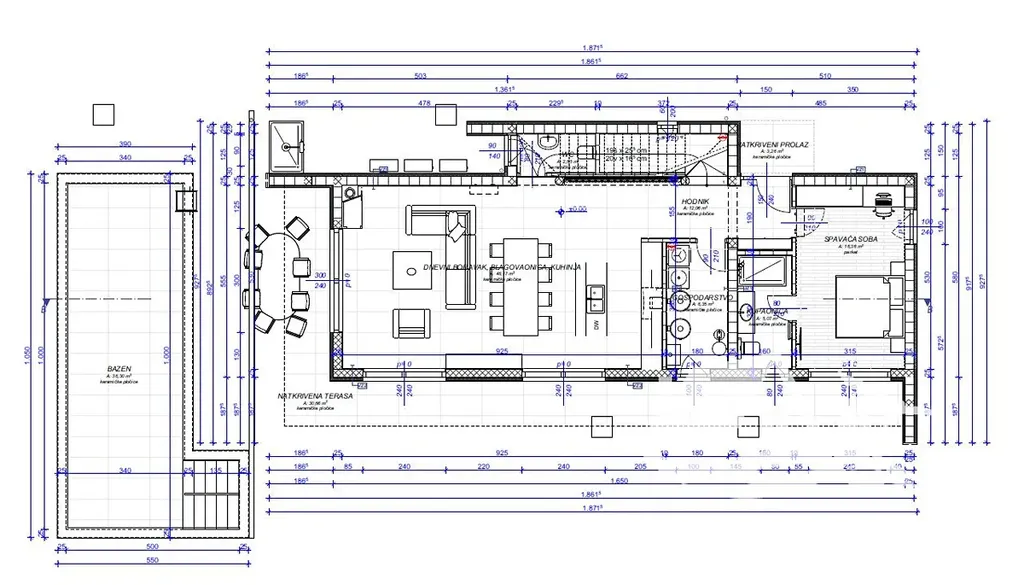 Vila je situována na prostorném pozemku o velikosti 1 080 m² a nabízí hrubou obytnou plochu 242,95 m² rozloženou do dvou podlaží. Součástí venkovní části je bazén o velikosti 36,30 m², letní kuchyně s plochou 23,88 m², samostatné venkovní úložiště a tři parkovací místa. Celý koncept domu je navržen s důrazem na komfort, funkčnost a soukromí.