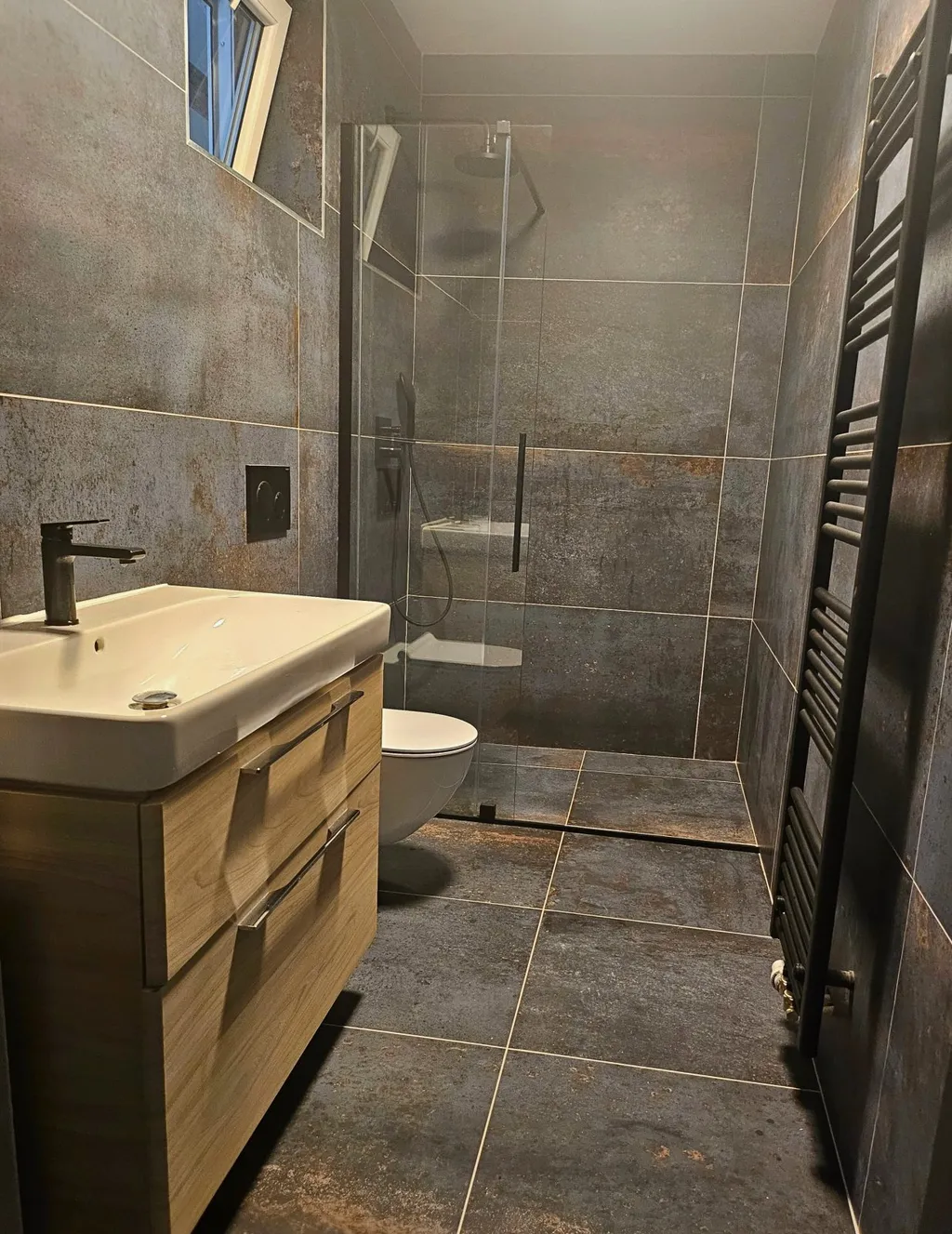 koupelna, dlažby, kamenný fasádní obklad, pergola, kompletní úprava zahrady