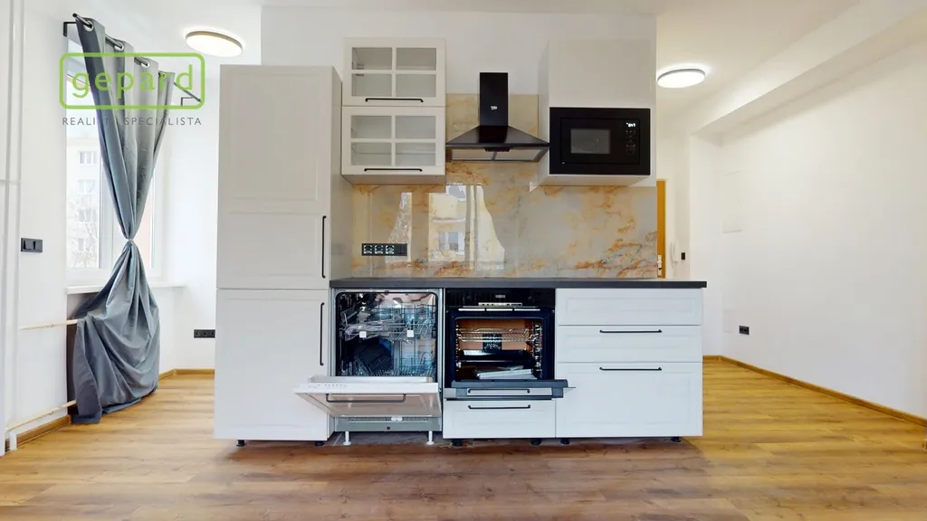 V bytě je úplně nová kuchyňská linka IKEA se zabudovanými spotřebiči. Jedná se o troubu Bosh (A+), myčku a mikrovlnku Lagan, sklokeramickou desku Eta či odsavač par Beko. Vinylové podlahy doplněny o speciální gumovou ochranu proti protečení okolo kuchyňské linky.
