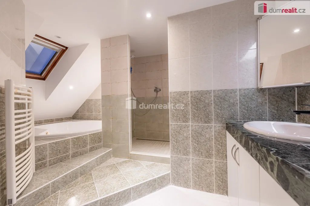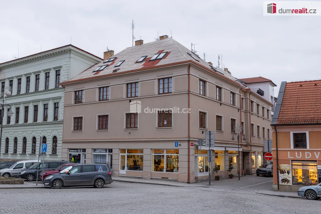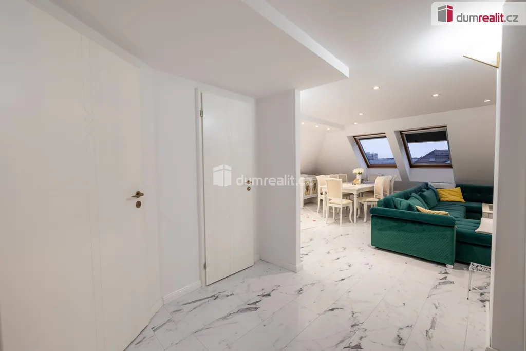 prodej mezonetového bytu 5 + KK, 130 m² podlahové plochy a 104 m² užitné plochy v samotném centru města Rakovník. Byt se skládá ze vstupní chodby, koupelny s vanou a sprchovým koutem, kde je dále oddělená technická místnost pro pračku a sušičku. Samostatné WC. Dva neprůchozí pokoje. Krásný prostorný obývací pokoj s kuchyňským koutem. Z obývacího pokoje vede schodiště do horního patra bytu, kde se nacházejí další dva pokoje a malý úložný prostor. K bytu náleží sklep 2 x 3 metry.