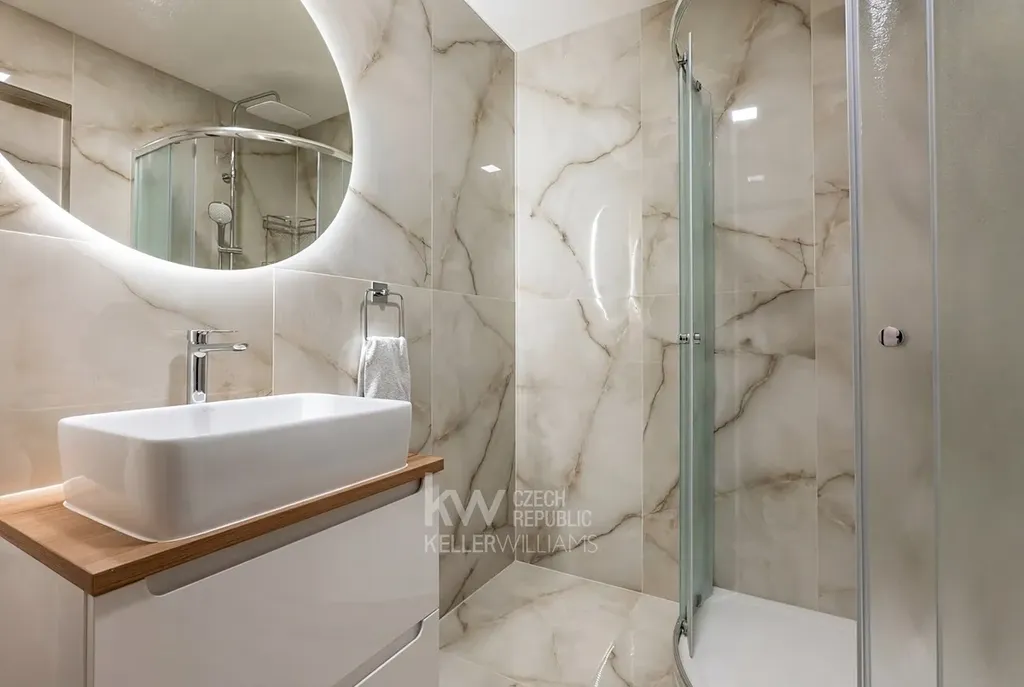 Byt byl zrekonstruován mezi lety 2023 a 2025. Má nové podlahy, novou koupelnu, a nové úsporné přímotopy s centrálním řízením přes aplikaci.
