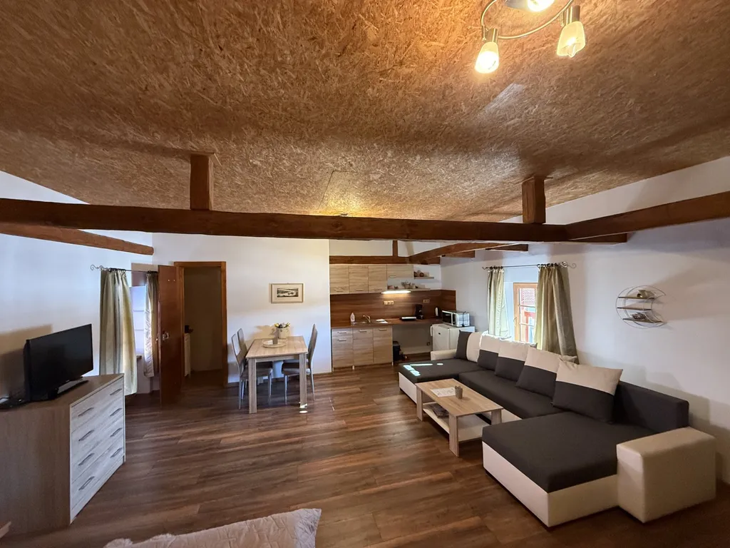 Hlavní budova nabízí komfortní rodinné bydlení, doplněné třemi samostatnými apartmány s vlastním sociálním zařízením a kuchyňkou. Samostatně stojící tiny housy poskytují moderní a flexibilní ubytování. Společenská místnost s barem a krbem, elegantní salonek a plně vybavená kuchyňka vytvářejí ideální prostor pro setkávání a odpočinek. Areál dále nabízí kryté posezení, saunu,koupací sud a krytý bazén. Historické stodoly a hospodářské budovy umožňují pořádání svateb, oslav, firemních akcí, nebo rozšíření ubytovacího a agroturistického provozu.