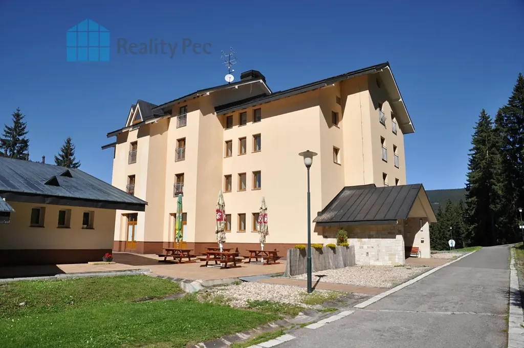 Nabízíme k prodeji dobře udržovaný prostorný apartmán v apartmánovém domě Poustevník. Perfektní poloha přímo u sjezdovky, ale i na klidném místě uprostřed přírody. Apartmán je kompletně vybavený. Koupelna se sprchovým koutem a umyvadlem, samostatné WC s umyvadlem, obývací pokoj s kompletně vybavenou kuchyňskou linkou a jídelním stolem, jedna ložnice s manželskou postelí a vlastním sprchovým koutem, druhá ložnice s manželskou postelí a v patře třetí ložnice se 3 lůžky.