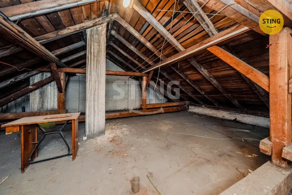 Součástí prodeje je také 1/4 podílu na půdě a sklepě. Nejedná se o konkrétně vymezenou část, ale o podílové vlastnictví.