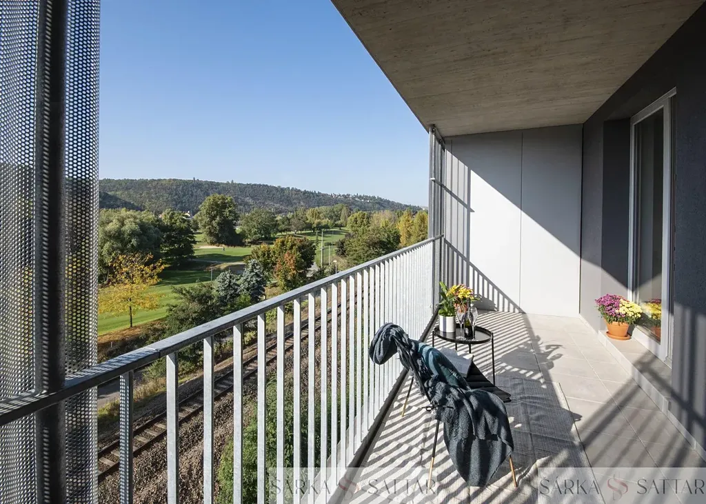 Obě obytné místnosti mají přímý vstup na krásnou lodžii s výhledem do zeleně golfového hřiště Hodkovičky.