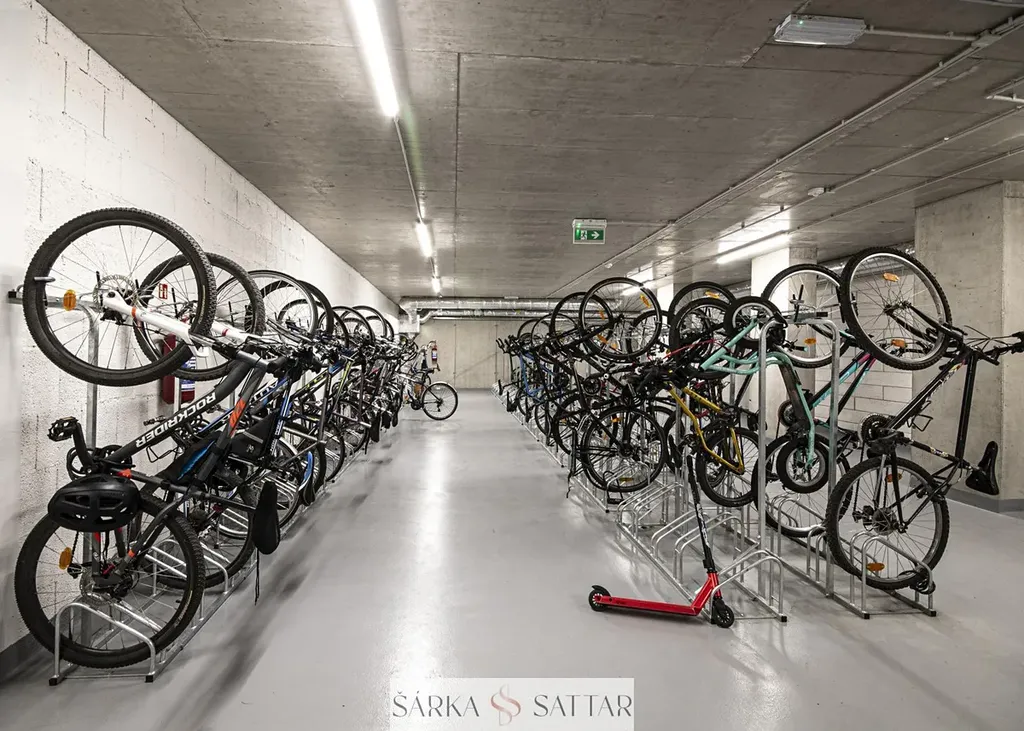 V nájmu je zahrnuto 1x garážové stání. V domě je k využití kolárna.
