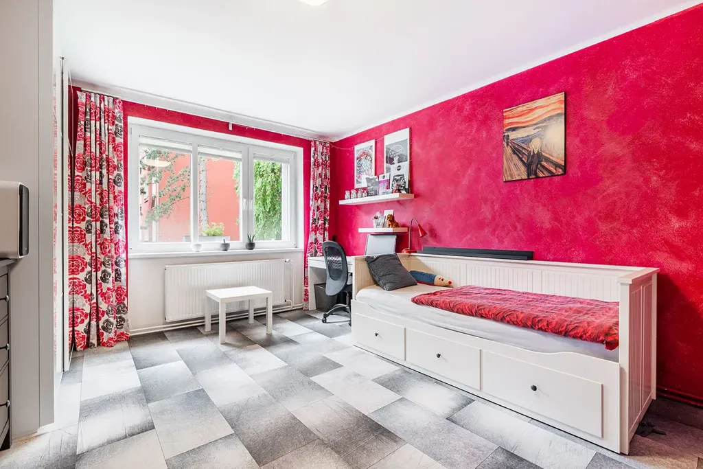 Dále jsou zde tři samostatné pokoje, vhodné jako ložnice, dětské pokoje nebo pracovna. Byt je velmi světlý, vzdušný a působí jednotným a moderním dojmem.
