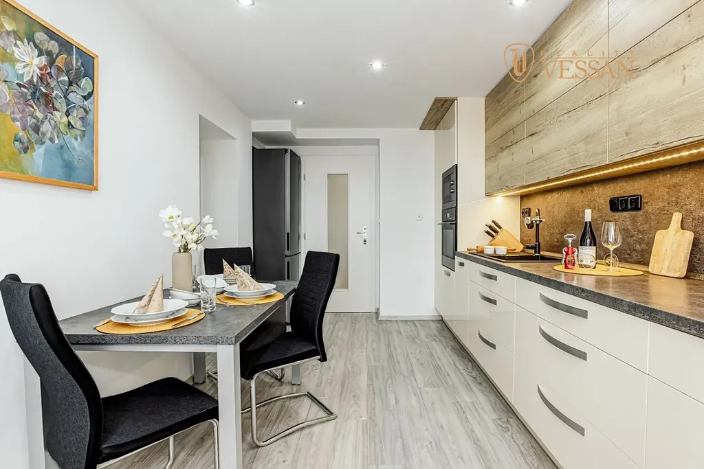 Byt prošel kompletní rekonstrukcí a je připraven k okamžitému nastěhování – bez nutnosti dalších investic. Je částečně zařízený: kuchyňská linka včetně spotřebičů a vestavěné skříně.