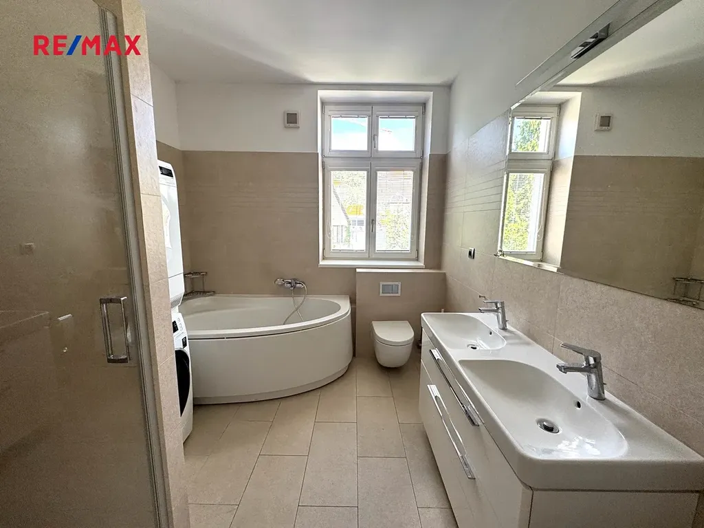 designovou koupelnu s velkou rohovou vanou, sprchovým koutem