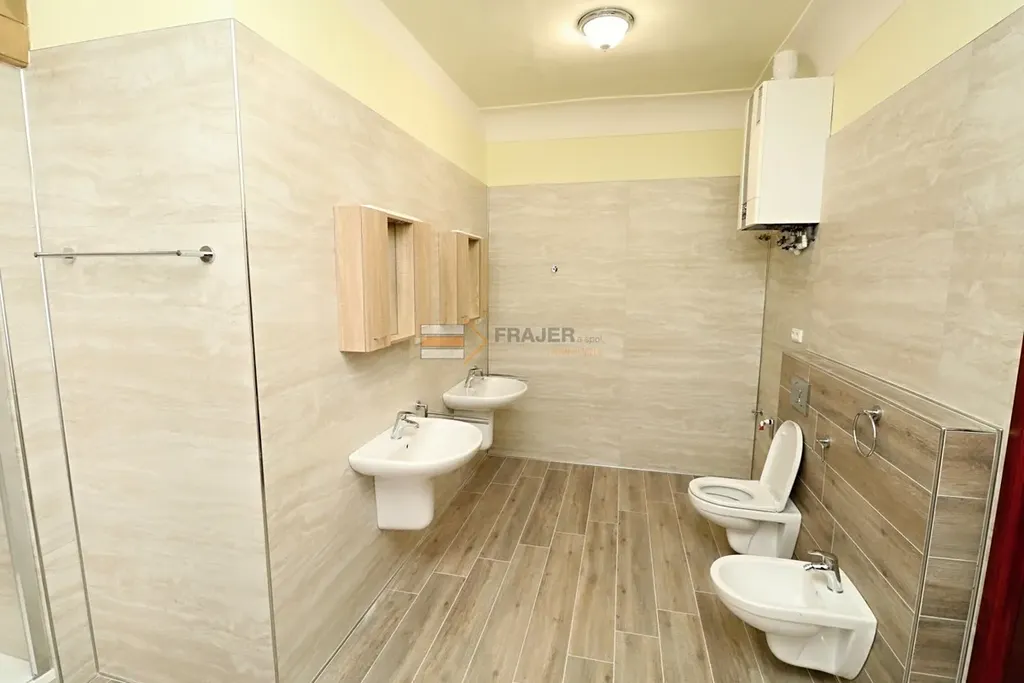Nabízím Vám k dlouhodobému pronájmu moderně zrekonstruovaný byt o dispozici 1+1 ( 55 m2) v 2. NP zrekonstruované historické budovy bývalé fary postavené v barokním slohu (původem z roku 1763) na adrese Václavské náměstí, Uhlířské Janovice. V bytě se nachází pokoj s kuchyňským koutem (zánovní kuchyňská linka, nová indukční varná deska, nová el. trouba a digestoř), velký pokoj a sociální zařízení (velmi prostorná koupelna se sprchovým koutem, dvě umyvadla, bidet a WC). Vytápění a ohřev TUV zajišťuje nový úsporný kombinovaný plynový kotel. V bytě jsou měřena všechna média samostatnými měřidly. Občanská vybavenost v blízkém okolí. Zastávka BUS je nedaleko domu. Zúčtovatelné poplatky za služby 3.000,-Kč/měs vč. elektřiny a plynu (předpis na 1 os.). Kauce 20.000,- Kč. K nastěhování po domluvě.