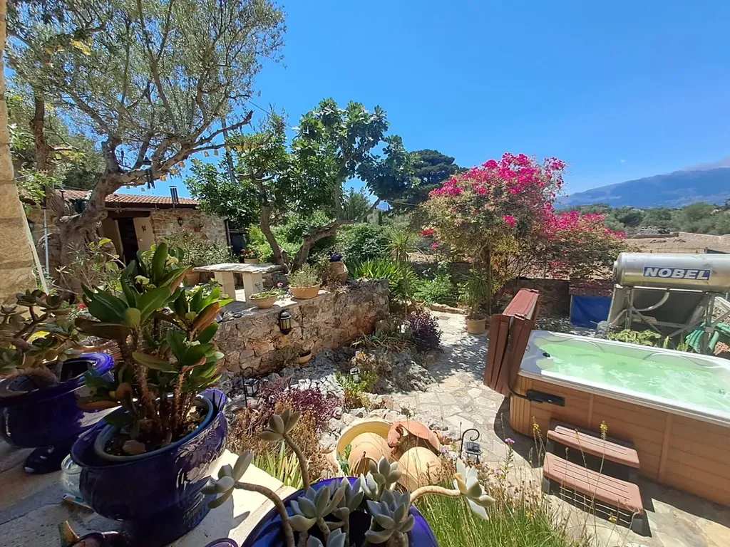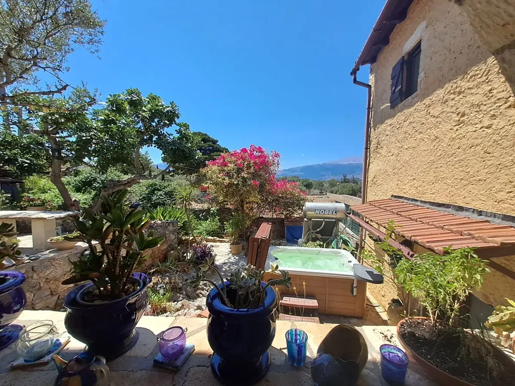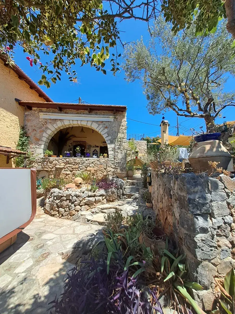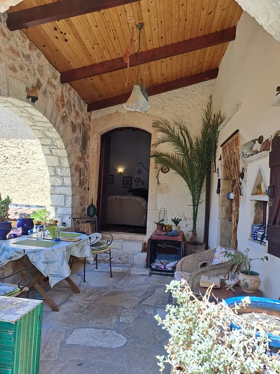 Tato jedinečná nemovitost se nachází v klidné krétské vesnici, která si zachovala svůj autentický charakter. Součástí je samostatný hlavní dům a samostatné studio s celkem dvěma ložnicemi a dvěma koupelnami, soukromým parkováním mimo silnici a vzrostlou zahradou.