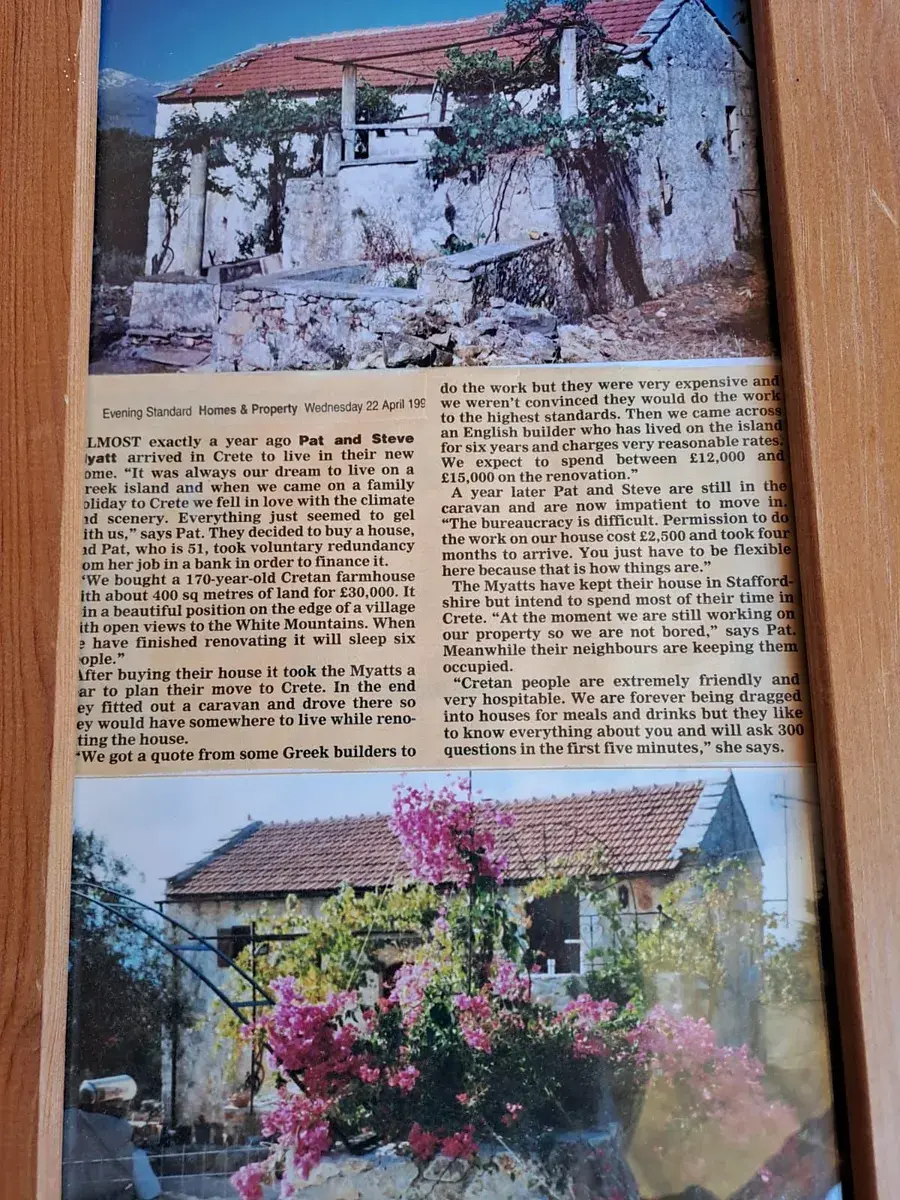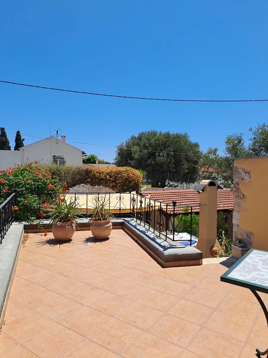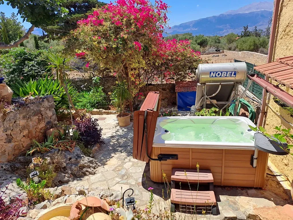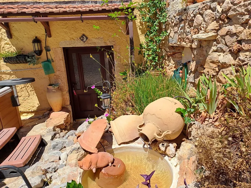Tato jedinečná nemovitost se nachází v klidné krétské vesnici, která si zachovala svůj autentický charakter. Součástí je samostatný hlavní dům a samostatné studio s celkem dvěma ložnicemi a dvěma koupelnami, soukromým parkováním mimo silnici a vzrostlou zahradou.