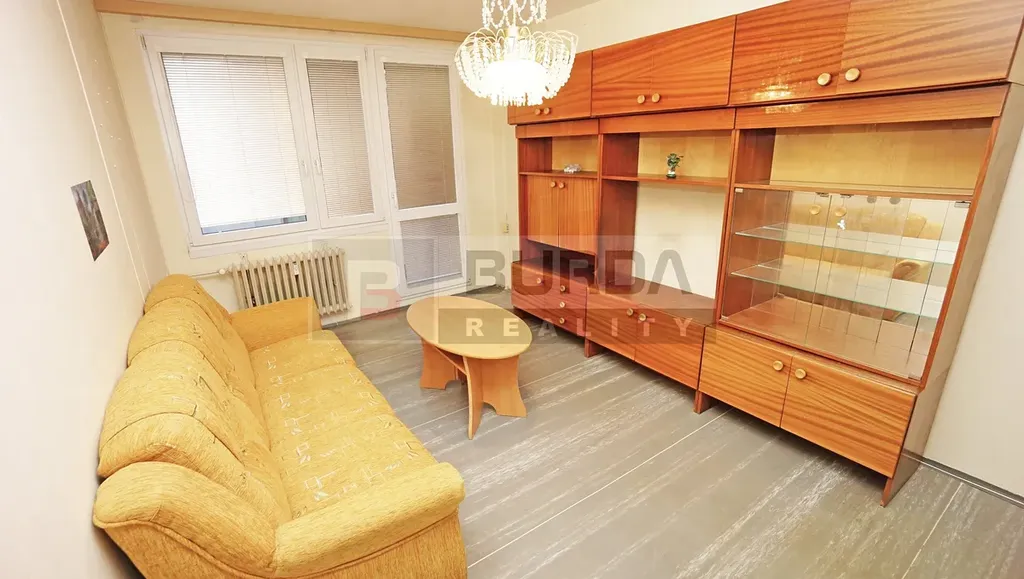 Vybavení bytu: kuchyňská linka, el. sporák Zanussi, sedačka bez křesel a bez konferenčního stolku, obývací stěna, v ložnici zůstanou dvě šatní skříně, v chodbě vestavěné skříně, svítidla v obou pokojích, ve všech oknech žaluzie a v obou ventilačkách síťky proti hmyzu, zasklená lodžie.