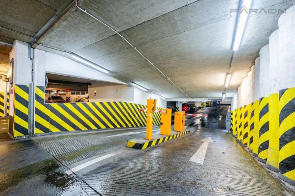 Garážové stání je přístupné 24 hodin denně, disponuje elektrickými vraty na dálkové ovládání, elektrickým osvětlením a bezpečnostním kamerovým systémem.