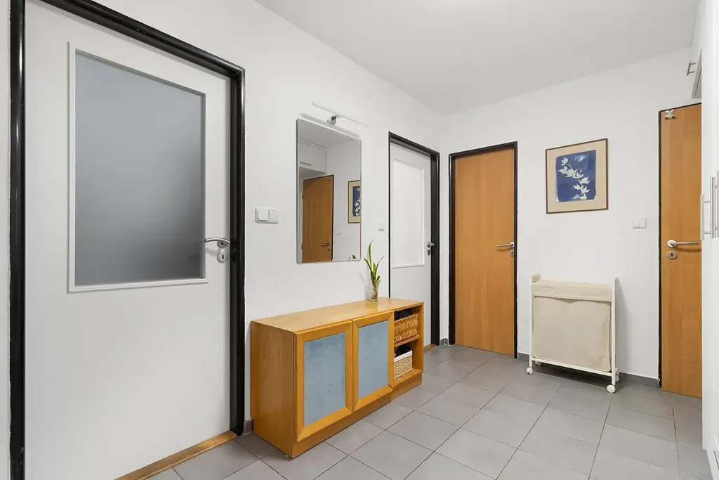 Byt je promyšleně členěn tak, aby poskytoval dostatek soukromí i společného prostoru, a zároveň je myšleno na dokonalou ventilaci okny ze 4 stran. Obývací pokoj s prostornou lodžií a kuchyňským koutem je jižně orientován.