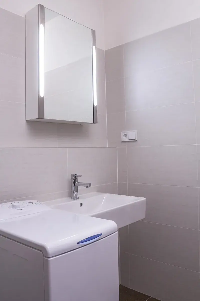Dispozičně se jednotka skládá z obytného prostoru s kuchyňským koutem, koupelny s WC a balkonu. Interiér působí velmi svěže, vzdušně a nadčasově. Byt je plně vybavený a připravený k okamžitému nastěhování – nabízí kombinaci moderního designu, funkčnosti a pohodlí.