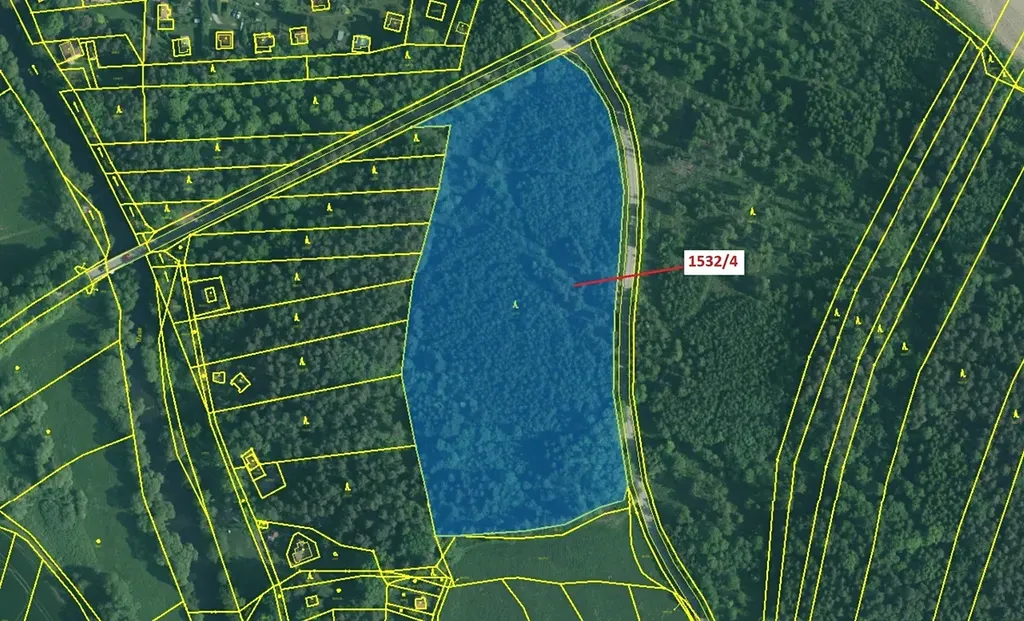 Lesní pozemek o výměře 34 065 m2, parcelní číslo 1532/4, podíl 1/1, katastrální území Dolní Stropnice, obec Římov, obec s rozšířenou působností České Budějovice, okres České Budějovice, Jihočeský kraj.