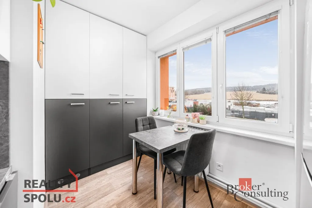 Byt se nachází v 1. patře zatepleného cihlového domu, je orientovaný na západ a má praktickou dispozici s neprůchozími místnostmi. Pronajímá se kompletně vybavený moderním nábytkem a spotřebiči (pračka, myčka, lednice s mrazákem, trouba, varná deska, mikrovlnná trouba, TV).