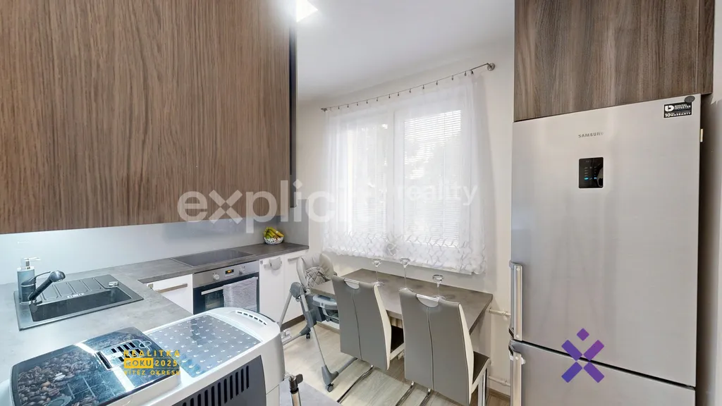 Poslední místností je kuchyně s kuchyňským koutem, jehož součástí je trouba, varná deska, digestoř a jídelní stůl (bez židlí). Po dohodě je možné v bytě ponechat také lednici a pračku.