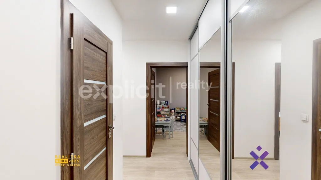 Po vstupu do bytu se ocitnete v prostorné chodbě kde se nachází velká vestavěná skříň, poskytující dostatek úložného prostoru.