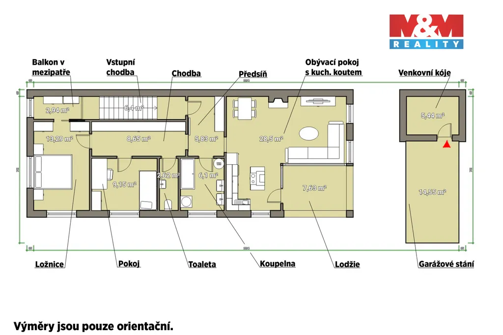 Krásný světlý byt 3+kk o užitné ploše 78 m², nacházející se v klidné části obce Chotěšov, pár m od centra. Tento byt v cihlovém domě se nachází v 1. patře domu z roku 2019 a je ve výborném stavu, připravený k okamžitému nastěhování. Byt disponuje obývacím pokojem s kuchyňským koutem a krbovými kamny (v oknech jsou elektrické rolety), jsou zde dvě samostatné místnostmi (ložnice - zde je navíc klimatizace, dětský pokoj), které nabízí dostatek prostoru pro rodinné bydlení. Velkou výhodou jsou další prostory - sklep, vlastní parkovací stání, a především také podíl na přilehlé zahradě. Bydlení tedy spojuje nízké poplatky bydlení v bytovém domě a komfort připomínající rodinný dům. V okolí je veškerá občanská vybavenost (ZŠ, MŠ, restaurace, obchod, aj.) a zároveň klid a příjemná atmosféra venkovského života. Ideální volba pro ty, kteří hledají pohodlné bydlení v klidné lokalitě, avšak s velmi krátkým dojezdem do města - Plzeň je cca 20 min. autem, jsou zde časté spoje MHD. Přijďte se podívat.