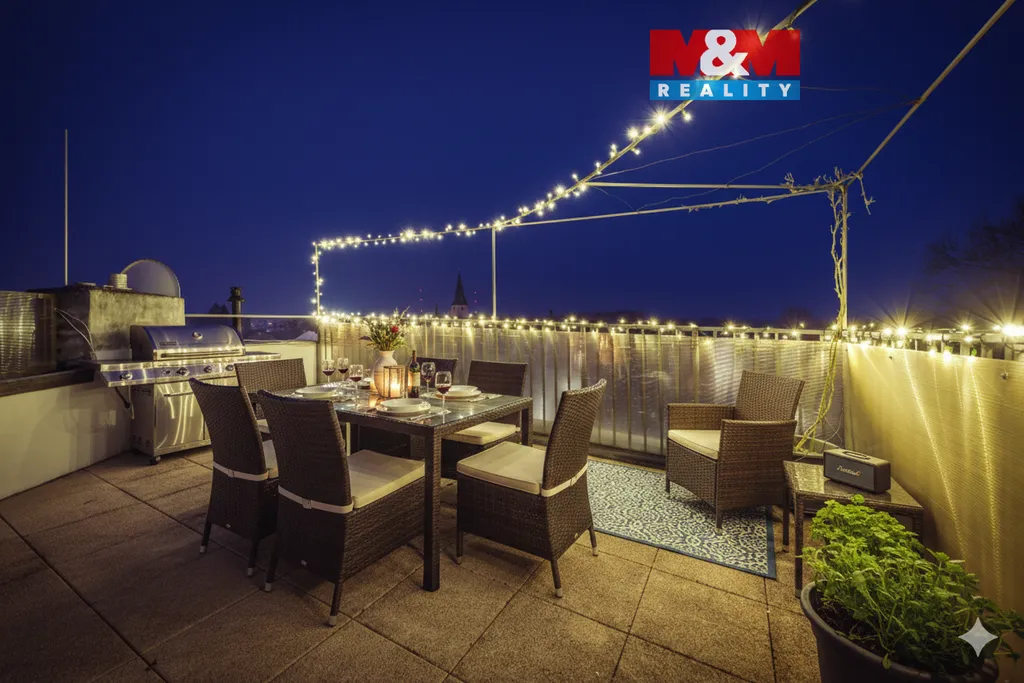 Nabízíme ke koupi výjimečný byt 2+kk se střešní terasou v centru Poděbrad. Byt o ploše 67,76 m² se nachází ve 3. patře cihlového domu v historické části města, pouhých 50 m od náměstí. K bytu náleží střešní terasa o velikosti 25 m² s výhledem na zámeckou zahradu a město, sklep o ploše 19 m² a možnost využívání společné zahrádky s posezením. Velkým benefitem jsou také dva balkóny orientované na lázeňskou kolonádu. Dispozice nabízí prostorný obývací pokoj s kuchyňským koutem a balkonem, ložnici s balkonem, koupelnu s vanou, toaletou a bidetem a předsíň. Díky velikosti a uspořádání je možné byt snadno upravit na dispozici 3+kk. Byt byl kolaudován v roce 2003 a v roce 2019 prošel kompletní rekonstrukcí, včetně protihlukových a tepelně izolačních oken. Vytápění a ohřev vody zajišťuje plynový kotel. V bytě je vzorný, řádně platící nájemce, který může po dohodě setrvat, což činí nabídku zajímavou i jako investici. V okolí se nachází centrum, lázeňská kolonáda, zámek, cyklostezka a jezero.