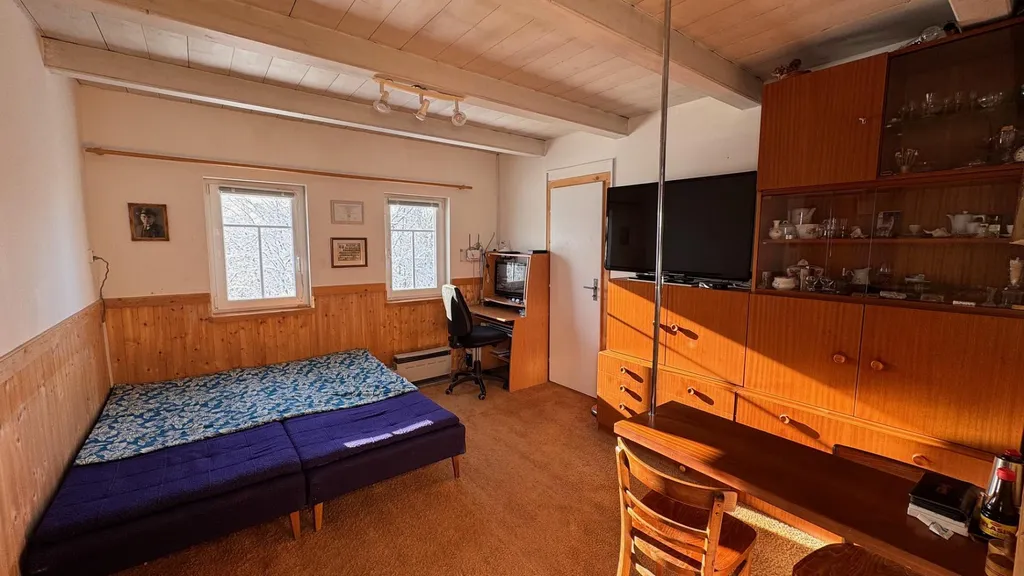 Nabízíme k prodeji prostornou chalupu 200 m² s garáží, která se nachází v malebné horské krajině Jizerských hor v obci Kořenov - Polubný.