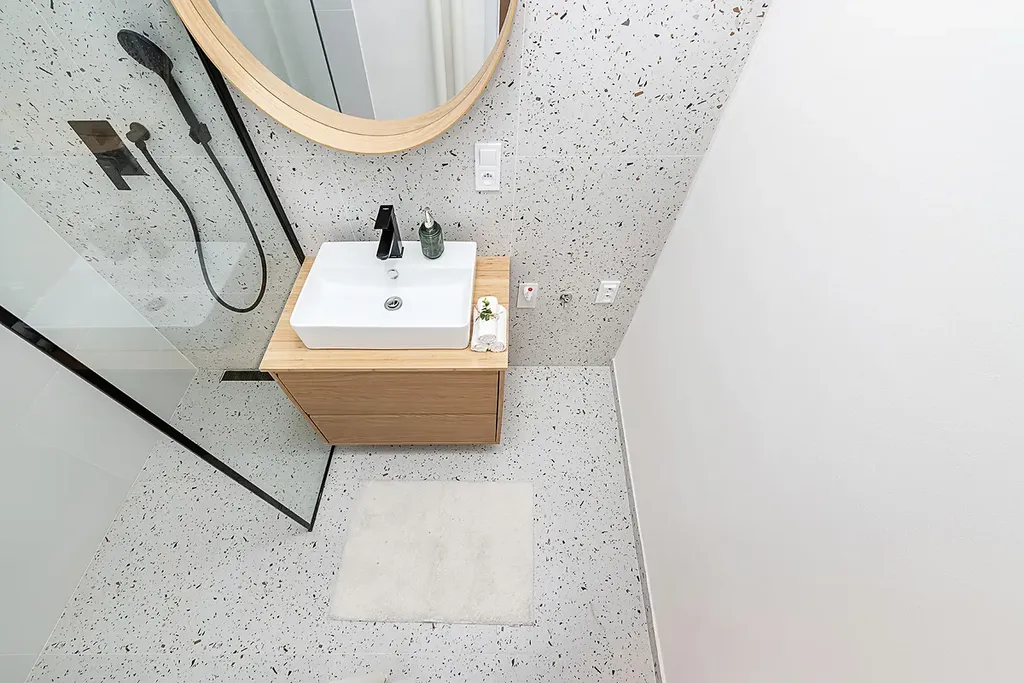 Dispozici bytu tvoří dvě neprůchozí ložnice, velkorysý obývací pokoj spojený s kuchyní, prostorná koupelna se sprchovým koutem a samostatný záchod.