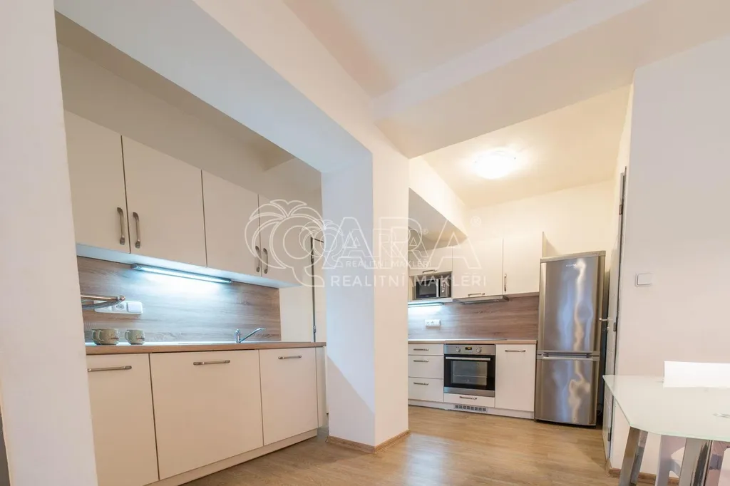 Pronájem zrekonstruovaného, bezbariérového, plně vybaveného bytu 2+kk, s podlahovou plochou 50 m2, moderně vybavená kuchyň s jídelním koutem,(lednice, mikrovlnná trouba, trouba, sklokeramická deska....), navazující obývací pokoj (bez sedačky), ložnice (postel po dohodě), koupelna se sprchovým koutem + WC, prostorná chodba, vestavěné skříně.Topení dálkové, plastová okna, žaluzie, nové podlahy.Byt se nachází ve 5. NP s výtahem, náleží k němu sklep a společné prostory.