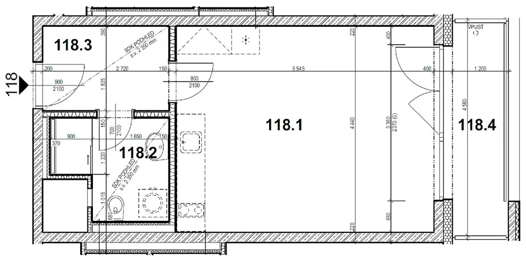 Byt o výměře 37,4 m2 se nachází v 8. nadzemním podlaží budovy s výtahem a skládá se z obývajícího pokoje s kuch. linkou, koupelny s toaletou, vstupní chodby s vestavěnou skříní. Dále je k dispozici parkovací stání a sklepní kóje.