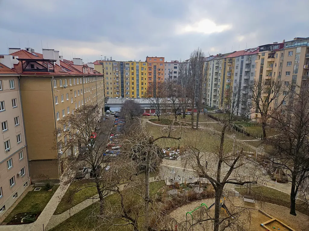 Okna v bytě jsou dřevěná, zdvojená. Podlahy – v pokoji parkety, v kuchyni lino. V kuchyni je plynový sporák. Ohřev teplé vody a topení je řešeno centrálně. Výhled z kuchyně i pokoje do vnitrobloku.