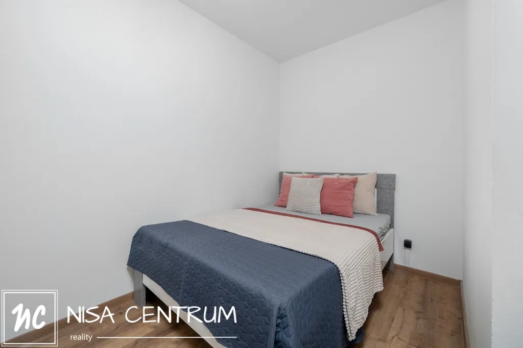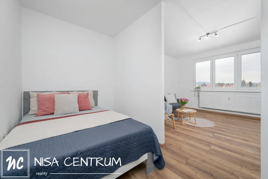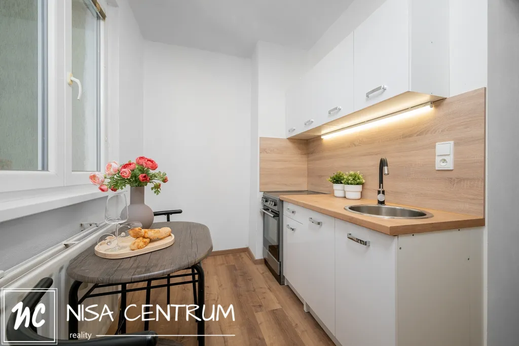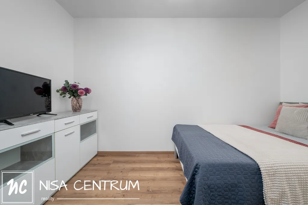 Za vstupem do bytu je prostorná vstupní chodba a po pravé straně prostorná koupelna se sprchovým koutem, toaletou a místem pro pračku. Chodbou dále se dostaneme do kuchyně s novou kuchyňskou linkou a menším jídelním stolem, obývací pokoj je rozdělený příčkou od ložnice s manželskou postelí, skříňkou a televizí. Jednotka je orientována a východ.